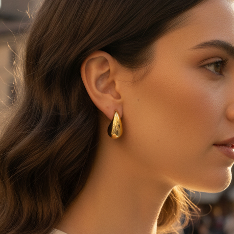 Ces boucles d'oreilles en acier inoxydable sont une pièce élégante et moderne. Leur design en forme de goutte et leur finition brillante attirent le regard avec un éclat sophistiqué. Ces bijoux, à la fois audacieux et intemporels, sont parfaits pour un style minimaliste et chic. Disponible en deux variantes : argentée et dorée.