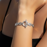 Ce bracelet en acier inoxydable est une pièce de caractère, alliant robustesse et élégance. Il se compose d'une chaîne à maillons ovales entrelacés. Ce bijou tendance est idéal pour un look chic et affirmé, parfait à porter seul ou en superposition pour un style audacieux. Disponibles en deux variantes : argentée et dorée.
