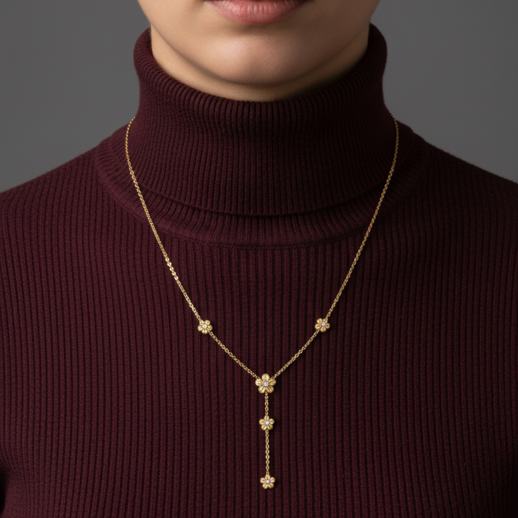 Flora collier dorée en Y en acier inoxydable avec fleurs